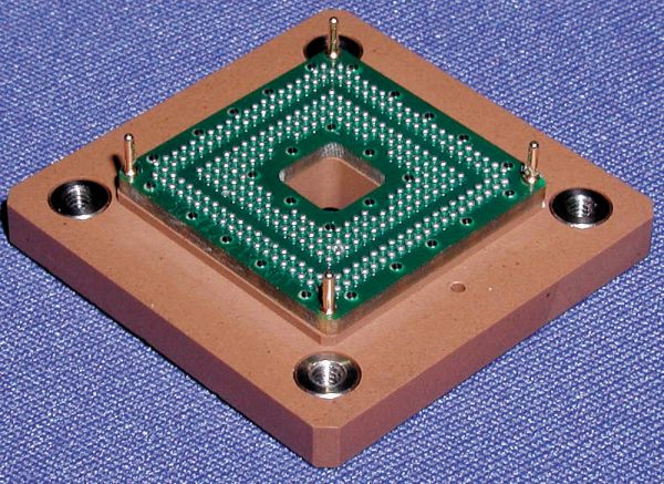 PGA (Pin Grid Array): Este zócalo se caracteriza por poseer conectores donde se insertan los pines del microprocesador. En sus primeras versiones se fijaba el microprocesador mediante un tornillo existente en el lateral del zócalo y por presión con el disipador. Posteriormente evolucionó al añadirse una palanca junto al zócalo que permitía bloquear los pines del microprocesador una vez introducido para evitar que se mueva. Esta tecnología se denominó ZIF (Zero Insertion Force). En algunas sitios podemos llegar a ver como que ZIF es un zócalo al igual que el PGA, pero lo más correcto es decir que ZIF es una tecnología que se introdujo en el zócalo PGA. Un ejemplo de PGA es el zócalo AM4 para microprocesadores de AMD.